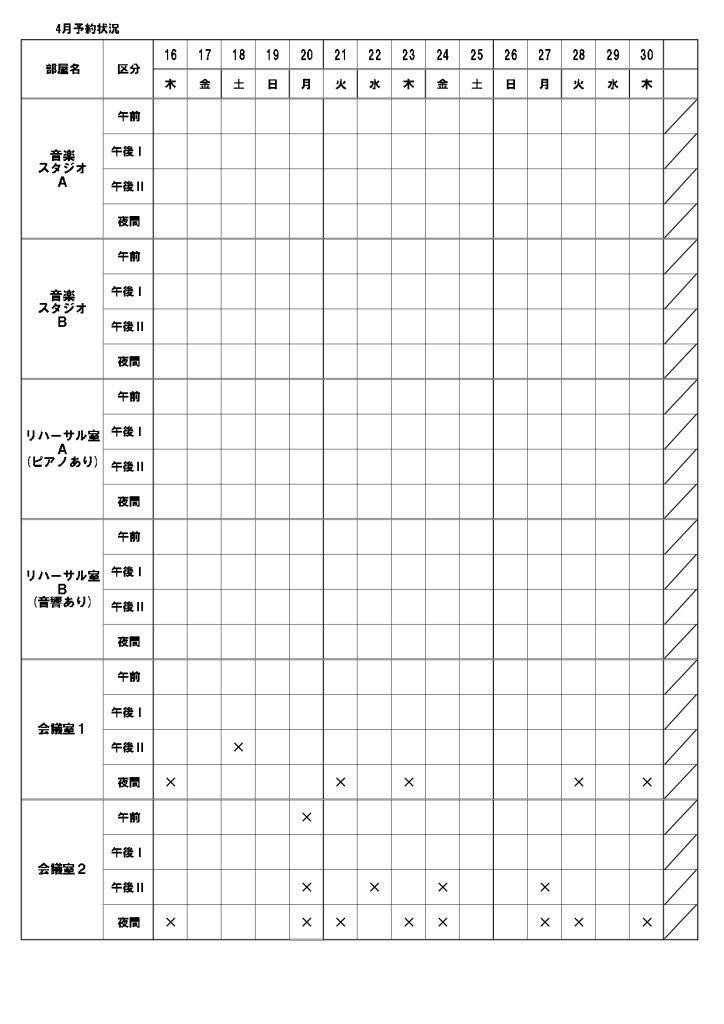 ※メールのみ、1月30日(金)10:00より受付開始2026年 4月の利用分 ・・・ 青少年と一般の平日の会議室の予約ができます。
