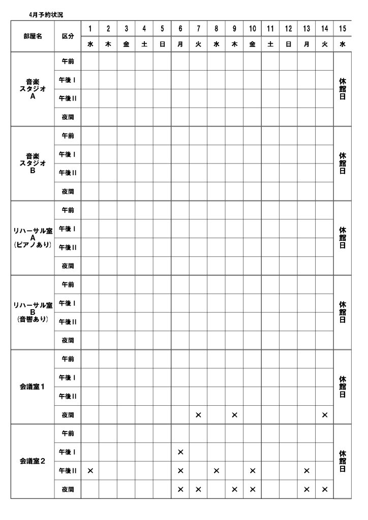 - 休館日・予約日について