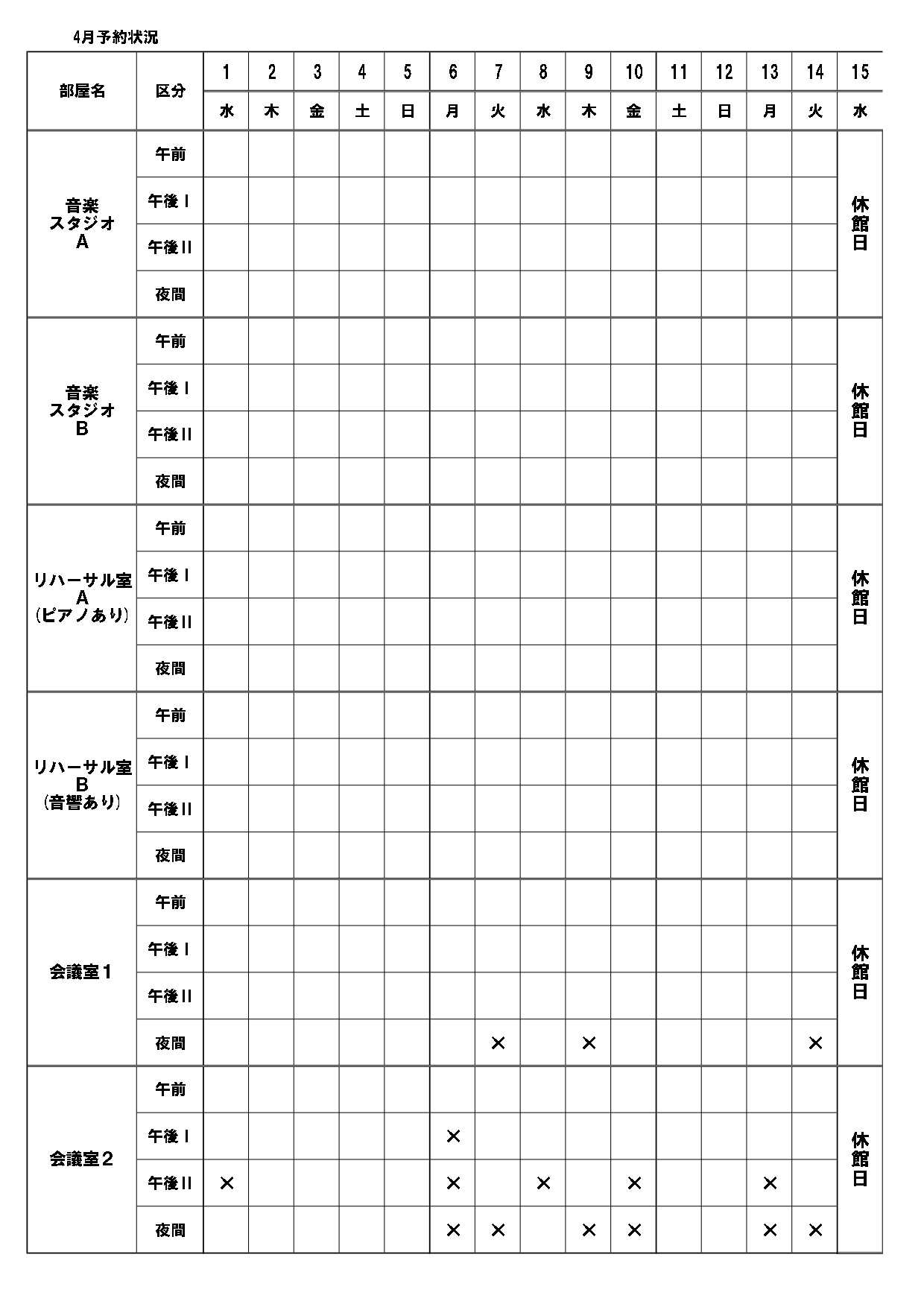 休館日・予約日について