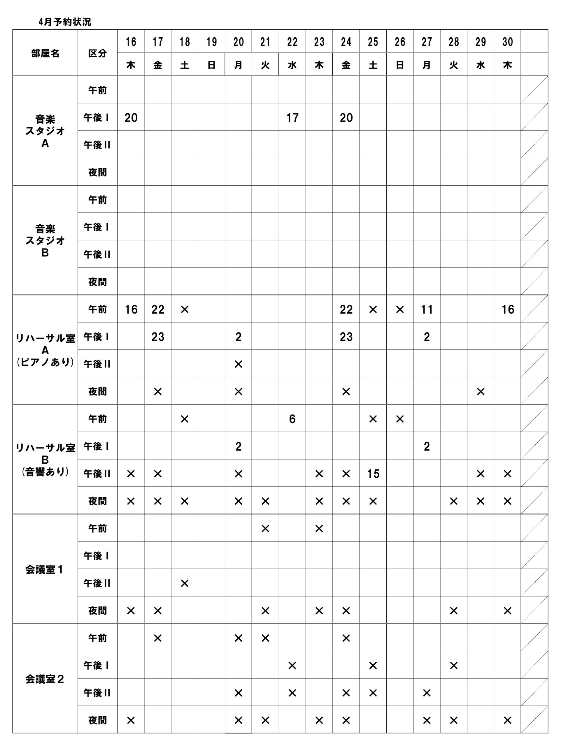 令和8年4月の予約確定表(2月28日受付分) 2026年2月28日 最終更新日時 : 2026年2月28日 youplakanri 4月の予約確定表 申込み時にお伝えした、申込番号をご確認ください。 ※この表は事前予約のための表です。通常の予約については反映されませんのでご注意ください。 FacebookXBluesky